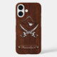 Funda iPhone 16 ¡Personalízalo! Calavera pirata de caoba náutica o