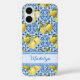 Funda iPhone 16 Personalized Name Blue Tile Mediterranean Lemon