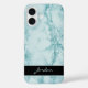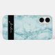 Este estuche para iPhone es sencillo pero sofisticado. Presenta una imagen de mármol pulido de color verde verde azulado o azul con una barra negra en la parte inferior con tu nombre en letra manuscrita.