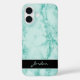 Funda iPhone 16 Piedra de mármol pulido verde marino con nombre