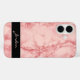 Este estuche para iPhone es sencillo pero sofisticado. Presenta una imagen de mármol pulido de color rojo claro con una barra negra en la parte inferior con tu nombre en letra manuscrita.