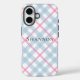 Funda iPhone 16 Pink and Blue Plaid Personalized Name