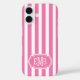 Customize this pink and white striped iPhone 16 case with your initials in a modern CAP font in white on pink. It's so modern and trendy yet preppy and classic!