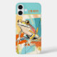 Funda iPhone 16 Plus Arte de rana divertida turquesa personalizado