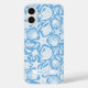 Customize this blue shell pattern iPhone 16 plus case with your your name in a trendy modern CAP font in blue on white. It's so modern and beachy!
