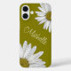 Funda de dispositivo Boho, con diseño de margaritas blancas en un fondo verde oliva. Con un guión caprichoso, usted personaliza con su propia letra. ¡Una buena manera de añadir un toque botánico a tu electrónica!