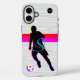 HAMbyWhiteglove alias HAMbWG diseñó estuches de teléfonos celulares - este tiene un gráfico de Soccer Player con un aspecto de arco iris ¡pelota de fútbol! El fondo puede ser cualquier color eligiendo la opción personalizar. Añade tu nombre e inicial eligiendo la opción de personalización. El tipo de letra puede cambiarse eligiendo personalizar. ¡Me encanta! Se muestra aquí en gris gradiente y blanco con banda de neón y luces de neón.