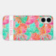 Customize this colorful coral and turquoise watercolor shell iPhone 16 plus case with your your name in a trendy modern CAP font in pink on white. It's so modern and trendy!