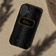 Una estuche de teléfono elegante y de lujo con un nombre en marcos dorados vintage. El patrón es un brillante patrón de diseño de arte negro. (el producto no tiene verdadero brillo o purpurina). Agregue su nombre y cree un funda elegante personal.