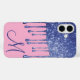 Purpurina azul goteo, personalizado con su monograma. Estuche de teléfono móvil.