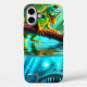 Este estuche de teléfono tiene un lagarto y un monstruo retratado en él.