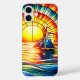 Este estuche de teléfono tiene una velera de vidrio manchada encima.