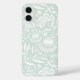 Un patrón floral moderno y geométrico en blanco sobre un fondo de color azul claro de menta fácil de personalizar hace que este estuche de teléfono sea bonito y sutil para una verdadera estética chill.