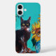 FUNDA iPhone 16 PLUS FLUJOS CON GATO NEGRO EN TURQUÍA AZUL
