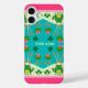 Funda iPhone 16 Plus Fun Frog Pattern Pink Green Custom Name