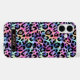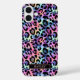 Customize this colorful iridescent rainbow leopard print iPhone 16 plus case with your your name in a trendy modern CAP font in peachy pink on black. It's so chic!
