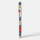 Customize this gorgeous red and cream on blue Japanese Chiyogami floral design iPhone 16 plus case with your your name in a trendy modern CAP font in cream on blue. It's so beautiful!