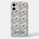 Customize this gorgeous teal, cream and pink Japanese Sakura umbrella and cherry blossoms on soft teal design iPhone 16 plus case with your your name in a trendy modern CAP font in cream on light teal. It's so delicate and beautiful!