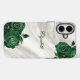 Funda Green Gold Floral White Marble iPhone 16 Plus. Eleva tu iPhone con esta elegante portada con nombres personalizados en letras de guiones. Es un diseño lujoso de moda de mármol blanco y dorado con rosas florales de color verde esmeralda y oro. Inspirados por la belleza atemporal de las piedras preciosas y los geodésicos, los movimientos de mármol de dorado blanco y brillante crean un ambiente sofisticado. Los ricos rosas de color verde esmeralda con delicados acentos dorados le dan un toque de opulencia y de gracia a la naturaleza, convirtiendo a este funda en una impresionante mezcla de lujo moderno y encanto orgánico. Diseñado tanto para el estilo como para la protección, este funda delgado y duradero protege tu teléfono mientras exhibe un diseño que es perfecto para los amantes de la estética fina y la elegancia inspirada en las piedras preciosas. Un accesorio imprescindible o un regalo reflexivo para quien aprecie la belleza y la sofisticación.