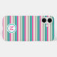 Funda iPhone 16 Plus Monograma rayado del Pastel verde rosa