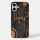 Funda iPhone 16 Plus negro metalizado con círculos de madera