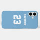 Añade un nombre y un número para personalizar este estuche de teléfono personalizado de inspiración azul claro y blanco. Es un regalo excelente para un fanático o atleta deportivo. Las opciones para cambiar el color y el tamaño de las fuentes están disponibles.