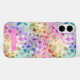 Customize this pastel iridescent leopard print iPhone 16 plus case with your your name in a trendy modern CAP font in white on pink. It's so chic!