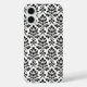 Funda iPhone 16 Plus Patrón de Damask de Feuille negro en blanco