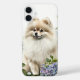 FUNDA iPhone 16 PLUS PERRO POMERANÍ DE COLOR CREMA EN FLORES DE SALVAJE