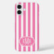 Customize this pink and white striped iPhone 16 plus case with your initials in a modern CAP font in white on pink. It's so modern and trendy yet preppy and classic!