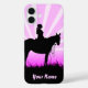 Colorful pink sunset cowgirl on horse on iPhone cases. Perfect for horse lovers and riders. ADD your own text to customize. Click Customize button.