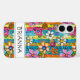 Haz una declaración retro con esta divertida funda para iphone 16 plus inspirada en el poder de la flor hippie de los 70! Es moderna y trendy con flores acuarelas multicolores brillantes. Hazlo único con tu nombre en una fuente CAP moderna en negro. ¡Se verá fabuloso en tu teléfono!