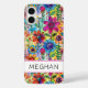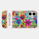 Haz una declaración retro con esta funda de teléfono iphone 16 plus inspirada en el movimiento hippie flower power de los 70! Es moderna y trendy con flores multicolores brillantes de acuarela. Hazlo único con tu nombre en una fuente CAP moderna en negro. ¡Se verá fabuloso en tu teléfono!