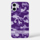 Customize this purple camouflage iPhone 16 plus case with your name in a trendy modern CAP font in dark purple on light purple. It's so modern, girly and trendy! Perfect for any country girl!