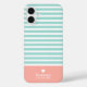 Funda iPhone 16 Plus Rayas delgadas Alcázar monograma verde azulado