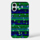 Funda iPhone 16 Plus Rayas verdes azules con estrellas y gotas de lluvi