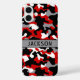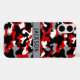 Customize this red, black, gray and white camouflage iPhone 16 plus case with your name in a trendy modern CAP font in black on gray. It's masculine and perfect for your favorite military, hunting, country or outdoorsman!