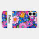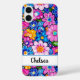 Make a retro statement with this groovy 70s inspired hippie flower power floral iphone 16 pro phone case! It's modern and trendy with bright multi-colored painted flowers. Make it uniquely yours with your name in a modern script font in black. It will look fabulous on your phone!