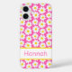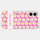 This iphone 16 pro plus phone case is so cute and girly! It's modern trendy daisy floral pattern with multi-sized white and yellow daisies on a pink background and your name in a fun trendy font will go with everything! It will look fabulous on your phone!