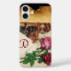FUNDA iPhone 16 PLUS TRES DOGGIES CON ROSAS MONOGRAMA