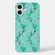 Funda iPhone 16 Plus Tulip Damask de Art Nouveau, Turquesa