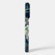 Monograma monogramado de letras iniciales estuche para iPhone con moderno patrón marino abstracto de moda. Color específico, con matices de franja crema verde azulada azul, cian, aqua, turquesa, crema, beige, como el océano, el mar, las olas, el agua, el lago. Única interpretación original contemporánea, parecida a gingham, a cuadros, cheque, a rayas. Incluso puedes borrar las cartas si no las necesitas. Diseño de moda femenina gitana para tu protección celular o un gran regalo creativo y hermoso para ella.