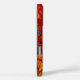Impresionante estuche para iPhone adornado con un diseño abstracto rojo y amarillo, ideal para los amantes del arte y los personajes de moda.