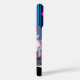 chica de anime bonito tocando el piano rodeado de estrellas y flores de color morado, azul y rosa.