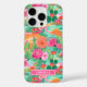 Customize this colorful watercolor iPhone 16 pro case featuring cacti with beautiful blooms in pinks and oranges with your name in a modern CAP font in white on pink. It's so modern and trendy!
