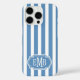 Funda iPhone 16 Pro Blue and White Monogrammed Stripes