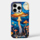 Este cautivador estuche de teléfono presenta una mística escena boscosa centrada en un gran hongo con un naranja dorado y un techo de setas, etiquetado como Deadly Webcap, frente a un cielo nocturno azul y con motivos ondulados, con una prominente luna llena y estrellas brillantes. De la tierra azul oscura salen setas más pequeñas y brillantes y una flora intrincada que realza el ambiente encantador. El diseño está personalizado en la parte inferior con el nombre de "Elizabeth".