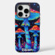 Esta pintura muestra un conjunto de fantásticos hongos brillando con colores vibrantes de neón en un contexto oscuro y estrellado. El arte se caracteriza por su textura de gran dificultad, con pinceles gruesos y expresivos que le dan a los hongos una apariencia tridimensional, casi esculpida. Las tapas de hongos son una brillante mezcla de rojo con manchas blancas que pasan a los lados traseros azules, mientras que sus tallos muestran patrones giratorios de azul y rosa. La vegetación de los alrededores también brilla con tonos de neón, creando una escena psicodélica y de otra índole