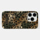 Customize this gold foil camo leopard print iPhone 16 pro case with your your name in a trendy modern CAP font in gold on black. It's so chic!