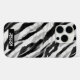 Un diseño abstracto inspirado en la piel de cebra en blanco y negro. Impresionante y único diseño de estuches de teléfono personalizado para usted, sus mejores amigos, ideal para regalos de cumpleaños. Fácilmente personalizado con tu nombre. Envíame un mensaje por Zazzle si quieres cambiar de color o ponerte en contacto con el soporte de Zazzle. ¡Disfruta comprando!